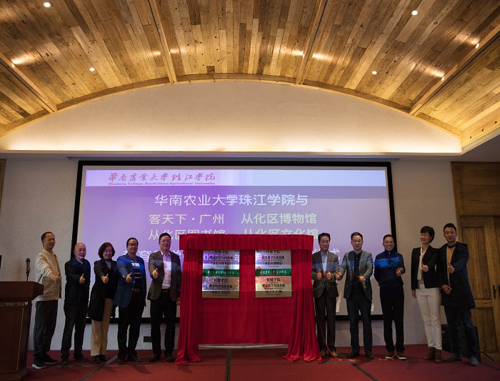 12月9日下午,华南农业大学珠江学院传媒学院与从化区图书馆、区文化馆、区博物馆、鸿客集团广州公司在客天下•广州国际旅游度假区幸福厅举行了教育教学实践基地签约暨授牌仪式(以下各单位简称为“华珠传媒”、“区图书馆”、“区文化馆”、“区博物馆”、“广州客天下”),从化区常委、宣传部部长骆志雄与从化区文广旅体局总工程师申国海莅临指导,从化区图书馆馆长邱跃、区文化馆馆长冯奕华、区博物馆馆长李小梅和华南农业大学珠江学院董事长宫俊全、华珠传媒学院院长梁深洪、华珠传媒学院党总支书记周玲军应邀到场。集团董事长蔡鸿章、广州公司总经理许文、集团董助申晓出席本次仪式。 从化区委区政府、区图书馆、区文化馆和区博物馆代表(左)与华珠传媒团队、客天下团队(右)签约暨授牌仪式现场仪式开始前,骆志雄常委代表从化区委区政府,对本次签约挂牌合作表示高度认可,认为五方共融共建教育教学实践基地,正是回答习近平总书记最关心的“如何将文化传播到每一个地方”这一问题的有力举措。同时,骆志雄常委对未来政校企各方优势互通、共创共赢表达了深切期待,希望广州客天下与区图书馆、区文化馆、区博物馆、华珠传媒着眼高处,“努力做民心相通的传播者,人文交流的促进者,为弘扬全人类的共同价值、推动构建人类共同体作出应有的贡献”,区图书馆、区文化馆、区博物馆作为宣传系统的重要组成部分,也将延续从化区委区政府的服务精神,对口支持高校人才培育需求和企业经营需要。