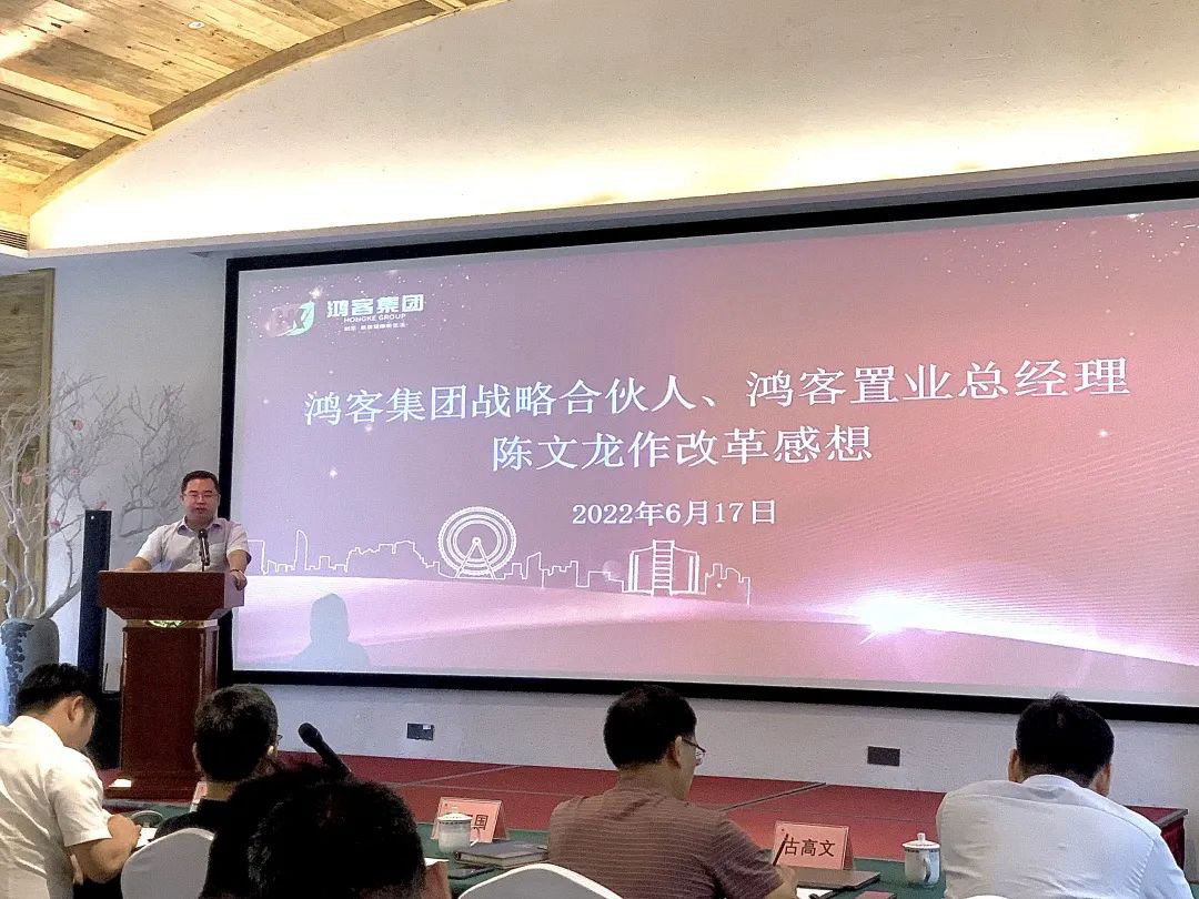 会议期间,鸿客集团战略合伙人、鸿客置业总经理陈文龙在会上分享对于集团改革的感想。他提到,集团公司每次改革都是应运而生,东莞公司近几年的发展成果得益于集团公司的改革。东莞公司作为集团试行合伙人战略首个试验田,已经初步营造了“人人都是创业者”的工作氛围。东莞公司坚信并号召,全体员工要坚定集团发展信心,勇于参与合伙人战略,东莞公司也必将全力以赴,作出表率!