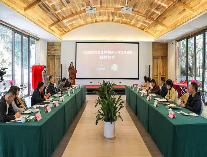 “乡村振兴是国家战略,是实现人民共同富裕的重要战略部署,也是贯彻落实党的十九届六中全会精神,推动经济高质量发展的重要举措。”农工商学院曾雅丽书记在讲话中围绕产教融合、校企共建共创共享、共同推进乡村振兴工作等相关议题谈合作愿景。一是以“耕读教育”为基础,共同培养一支“一懂两爱”的“三农”工作队伍,助力企业文旅消费产业、康养消费产业、青春消费产业和潮流文化产业的发展;二是以“产教融合”为抓手,共同打造服务乡村振兴战略的人才培养驿站,培养立足于乡村振兴战略,具有爱国情怀,具有使命担当,具有远大理想的优秀学子;三是以“共赢共享”为核心,共同探索全新的校企合作模式。校企双方可围绕产学研一体化开展深度合作,共同探索校企“双元育人”人才培养模式改革,共建协同创新中心和科研团队,深化拓展校企合作渠道,探索校企共建“高水平专业群产教融合实训基地”、“产教融合型企业”,依托企业共建合作平台开展综合型人才培养和社会培训,使校企合作迈上新的台阶。