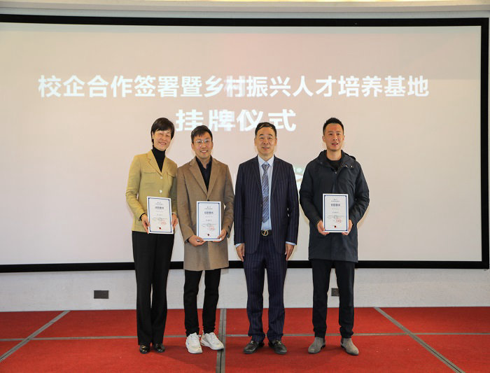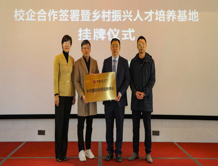 仪式上,曾雅丽书记、蔡鸿章董事长等人共同揭牌“乡村振兴人才培养基地”。农工商学院副校长张凯和集团管理中心总监曾金杰分别代表校企双方进行合作签约。校企双方共同成立客天下·乡村振兴协同创新中心,曾雅丽书记任协同创新中心顾问,刘鑫院长(农工商艺术与设计学院)任协同创新中心团队主任,许文总经理任协同创新中心秘书长,申晓董助任协同创新中心副秘书长。