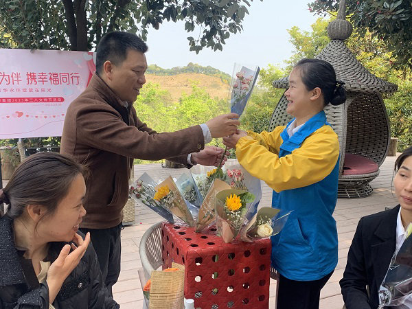 活动开始,曾金杰副总裁代表集团董事长和总裁向女职工们致以节日的问候和诚挚的祝福,并送上为女职工精心准备的鲜花和幸福节日红包作为惊喜。