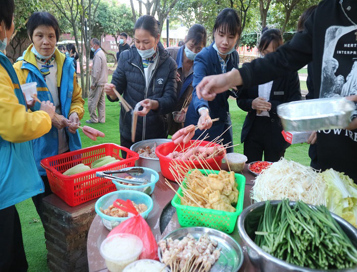 不一样的烧烤体验,一样的幸福感。沐浴着温暖的阳光,大家暂时放下工作的压力,施展各自的烧烤技艺,欢声笑语和交谈声伴随着缕缕炊烟萦绕在烧烤场中。吃着亲手烤出的美食,聊着在工作和生活中遇到的趣事,寿星们之间的距离在一来一往中逐渐拉近,在“家的味道”中感受到了浓浓的温暖和情谊。